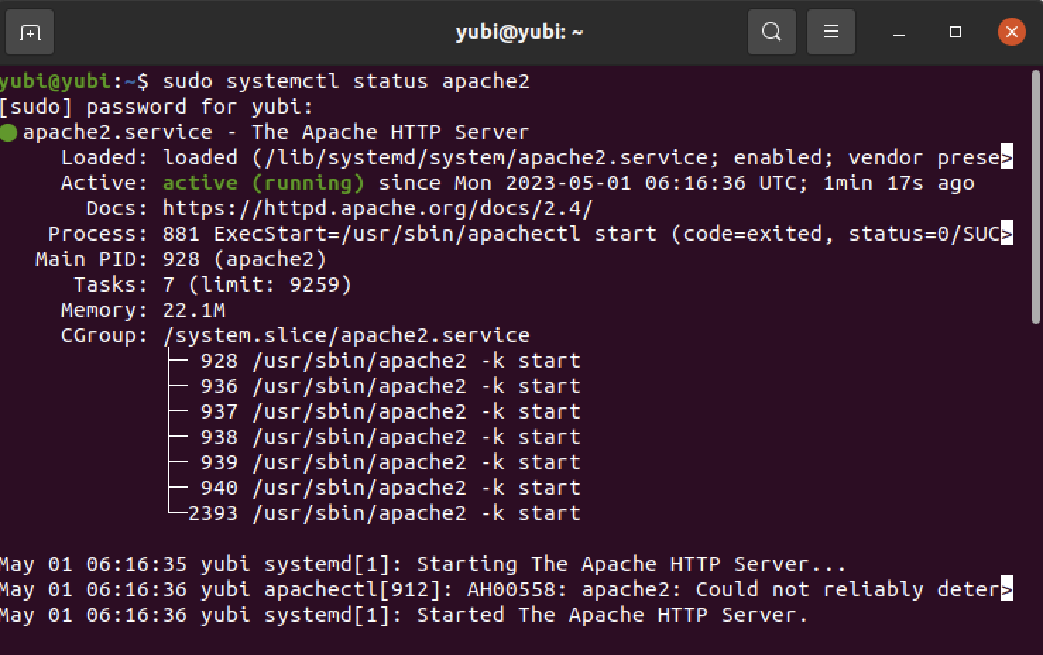 sudo systemctl status apache2