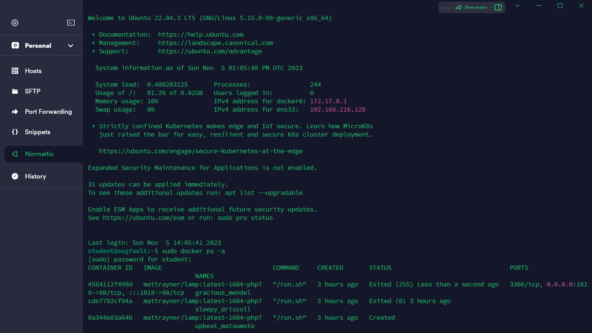 student@segfault:~$ sudo docker rm -f cd