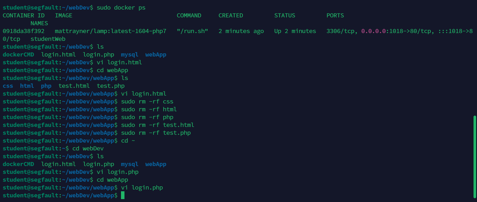 student@segfault:~$ sudo docker rm -f 0a