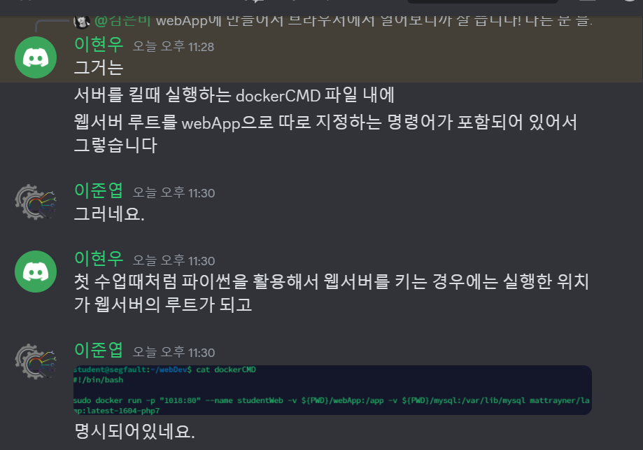 알고보니 선생님께서 미리 제작해둔 dockerCMD에 미리 루트 디렉토리가 정의되어 있었기 때문이었다.