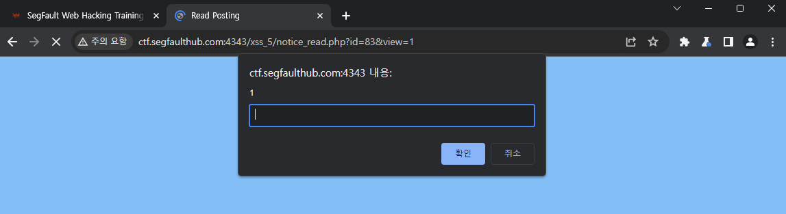 = 스크립트가 제대로 동작하여, XSS 공격이 성공했다는 걸 알려줌